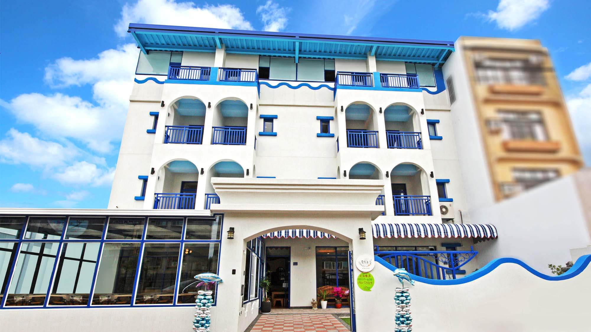「屏東東港民宿‧愛晴海民宿」以藍白色相間打造出充滿地中海風情的外觀,就像是佇立在海灣邊的城堡般令旅人的心情也跟著雀躍起來,民宿內公共空間延續著海洋風格,並佐以鄉村氣息讓空間呈現出慵懶不拘的氛圍。